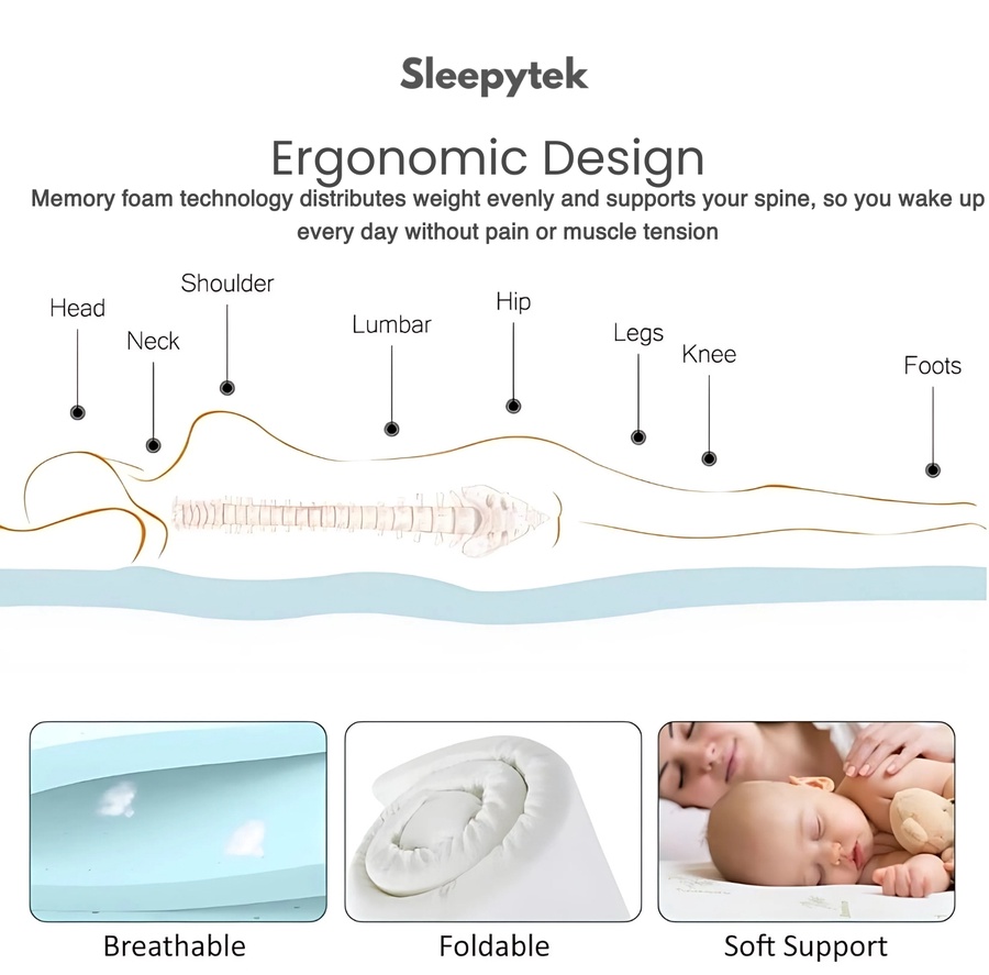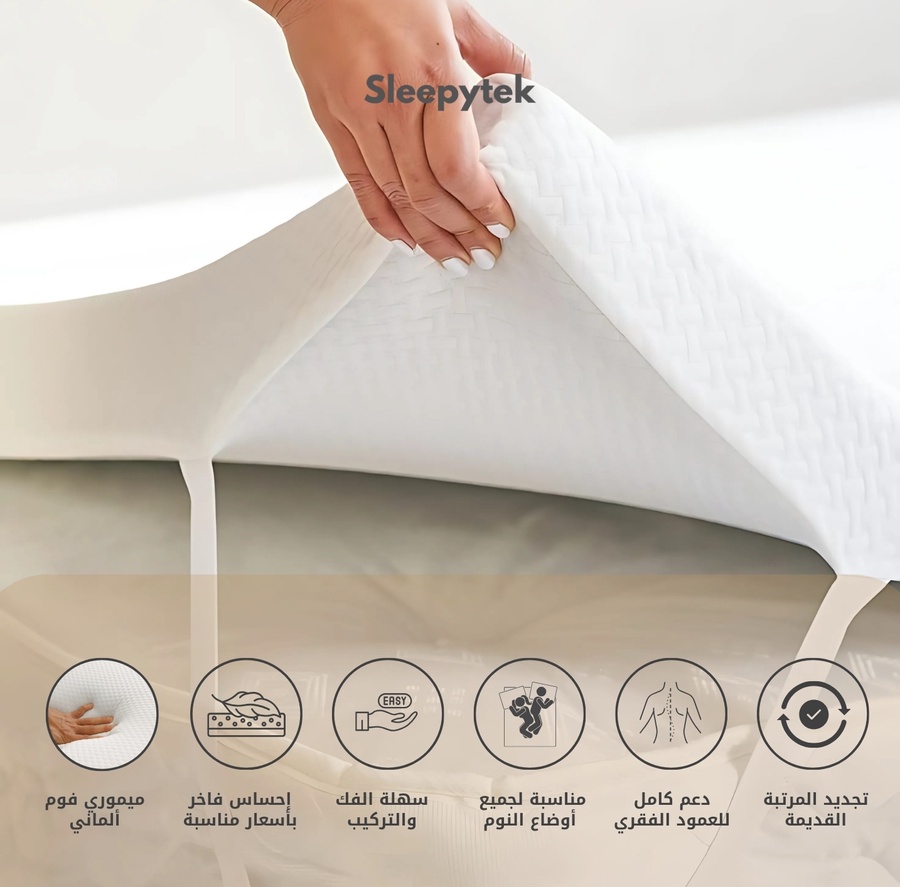 مرتبة تطرية ميموري فوم من SleepyTek – راحة ودعم طبي للظهر وتجديد المرتبة. | SleepyTek memory foam topper – comfort, spine support & deep sleep