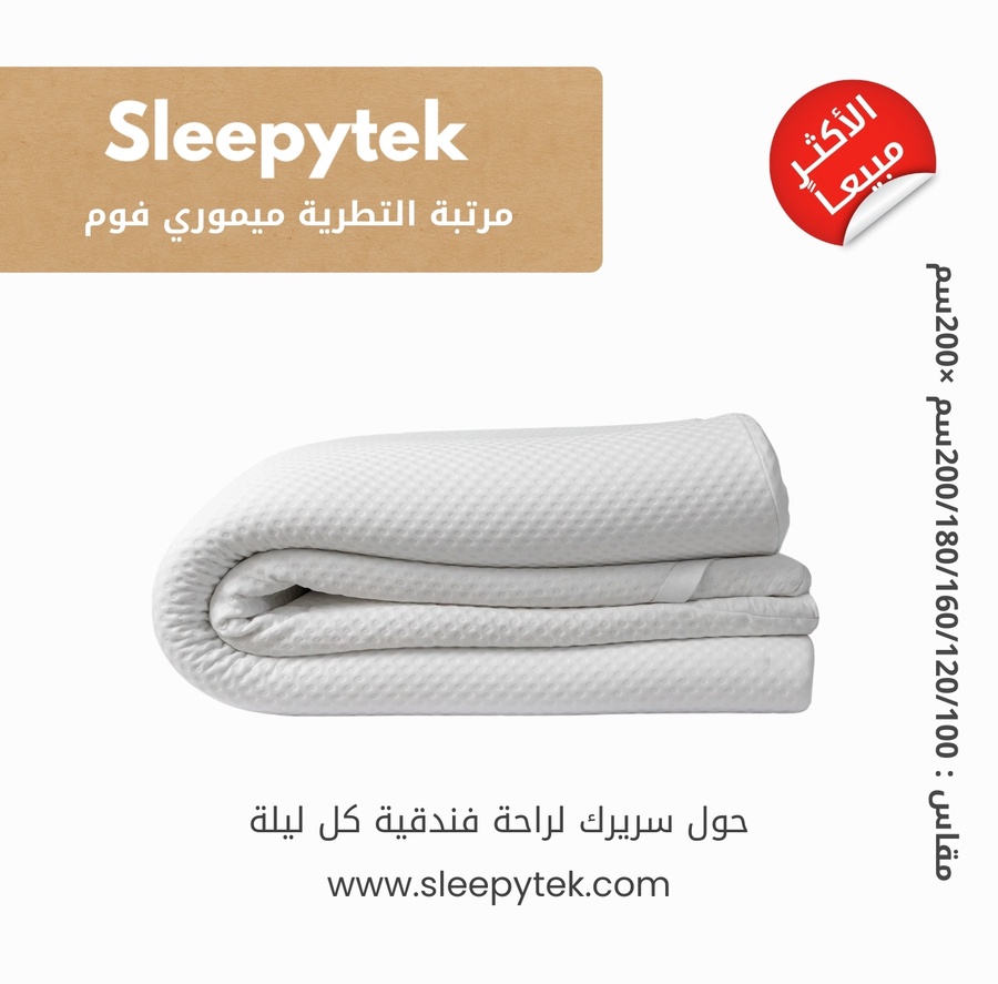 مرتبة التطرية ميموري فوم من SleepyTek بتحوّل أي مرتبة عادية إلى مرتبة طبية مريحة، بتدعم جسمك وبتخفف الضغط على الظهر والمفاصل.